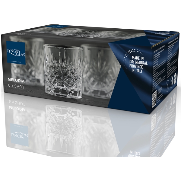 Eleganta shotglas som framhäver innehållets nyanser när ljuset och skuggorna i omgivningen reflekteras i glasets vackra mönster. De små glasen är i en storlek som är perfekt för vardagens superhälsosamma grönsaksshots, jul- och påskluncher eller andra festligheter med snaps och liknande. Den vackra glasserien är tillverkad i Europa. Glasen tillverkas i elektriska ugnar, som använder förnybar energi från solfångare, och överskottsvärmen från produktionen återanvänds någon annanstans på fabriken. Råvarorna som används håller absolut högsta kvalitet. Tål maskindisk.