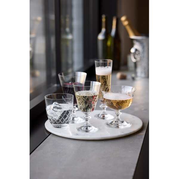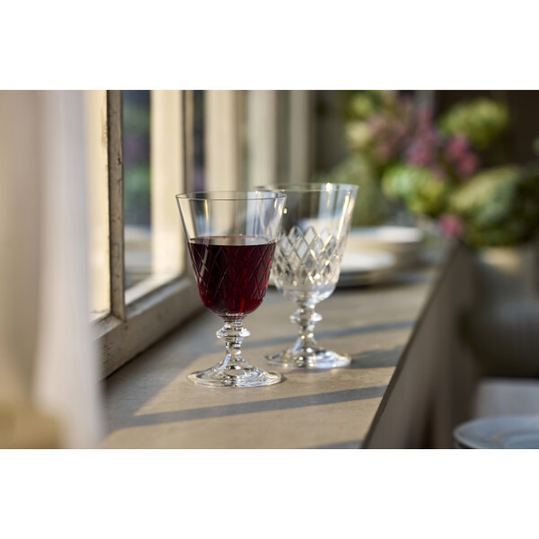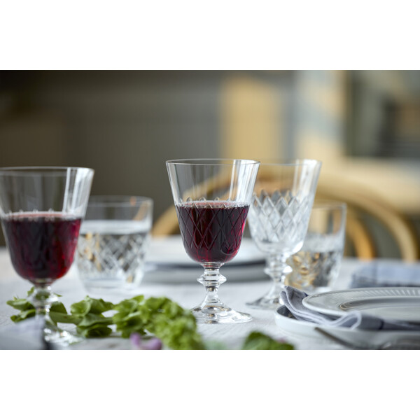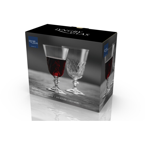 Eaton rödvinsglas, 26 cl, tolkar om det klassiska diamantformade mönstret från det ikoniska Eaton-glaset, som Lyngby Glas skapade på 1960-talet. Designets tidlösa estetik förenar klassisk charm med modern stil och tillför en helt unik stämning vid bordet. Tillverkat i kristallglas erbjuder Eaton enastående klarhet och hållbarhet, vilket gör glaset till ett nöje att använda – oavsett om det är för en mysig vardagsmiddag eller en festlig kväll med vänner. Glasets korta stjälk ger extra stabilitet och gör det bekvämt att hålla i. Eaton tillverkas i Europa med stor precision genom en avancerad produktionsprocess som inkluderar maskinslipning och polering. Resultatet är hög klarhet och en exklusiv finish som framhäver glasets enkla elegans.