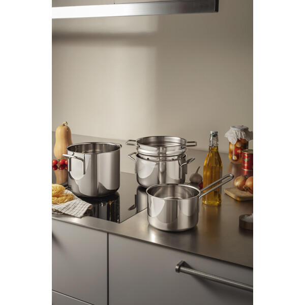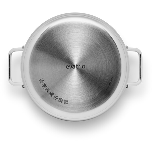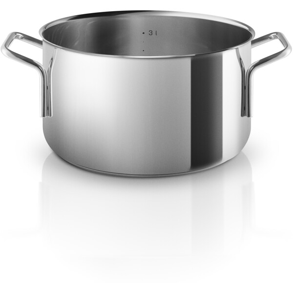 Varje kök förtjänar en slitstark gryta av rostfritt stål. Det robusta materialet tål daglig användning, medan den inkapslade sandwichbotten säkerställer jämn värmefördelning. Det är därför grytan är det självklara valet när du ska tillaga soppor, sjudande rätter eller grytor. Grytans stomme är tillverkad av 90 procent återvunnet rostfritt stål och designen är baserad på den klassiska Ole Palsby/Eva Trio-designen från 1977, vilket säkerställer kompatibilitet med befintliga Eva Trio-lock. Pannan fungerar på alla typer av värmekällor och tål maskindisk.
