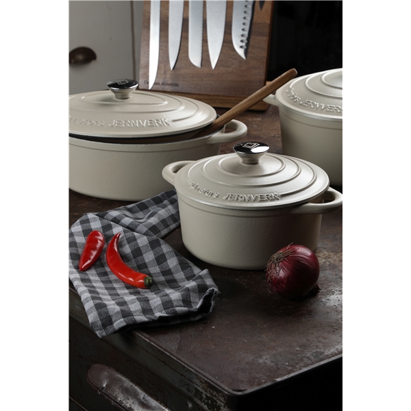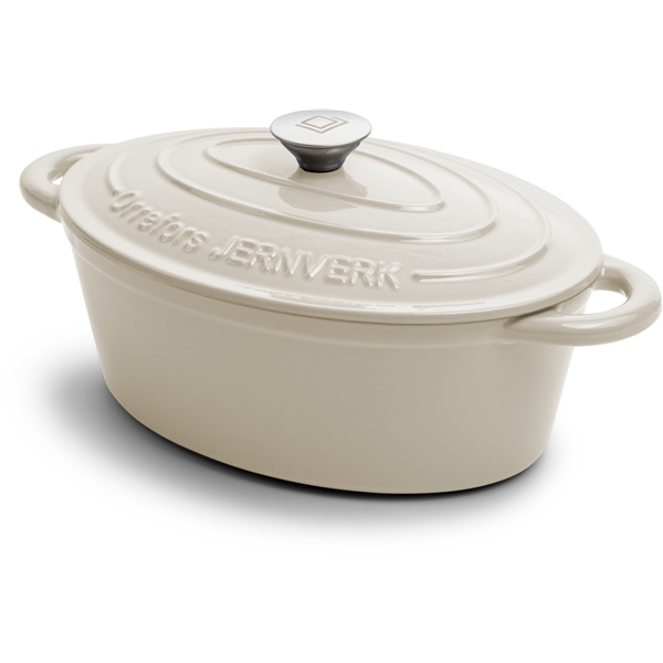 En lite större emaljerad gjutjärnsgryta med oval form. En gedigen gryta perfekt för både långkok och vardagsmat. Finns i flera färger.