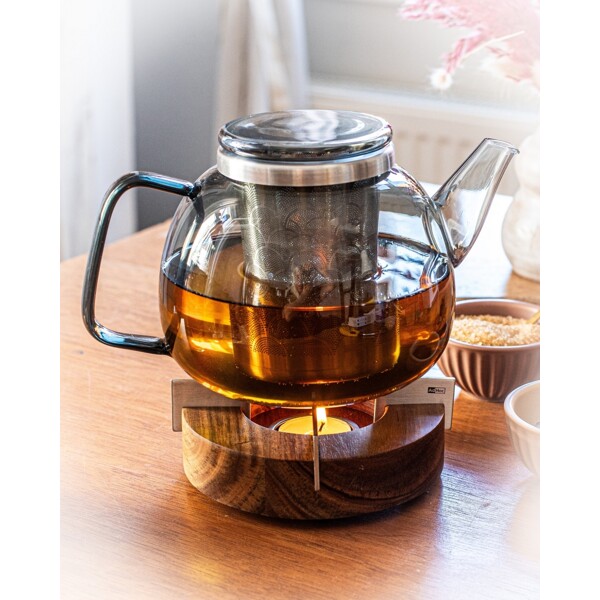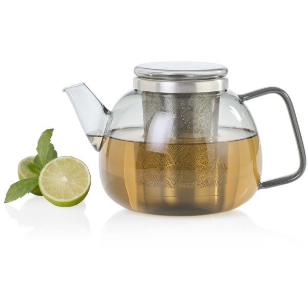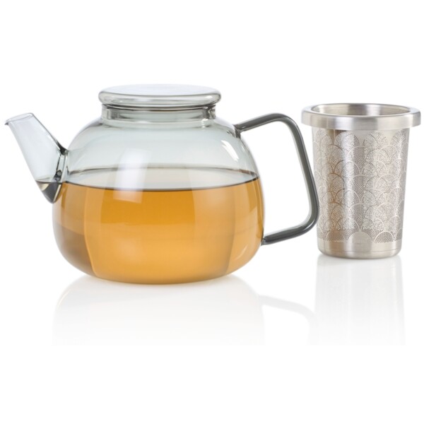 Tekanna med stort finfilter för optimal aromutveckling. Tillverkad av munblåst glas, vilket gör varje kanna unik.