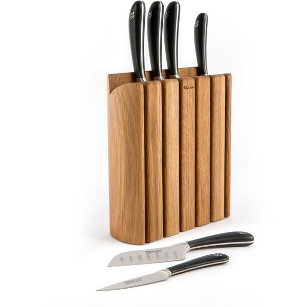 Knivblock i massiv ek i Signature serien. Idealisk att ställa mot en vägg för att spara dyrbar plats i köket. Blocket levereras med 6st flerfaldigt prisbelönta Signature knivar.