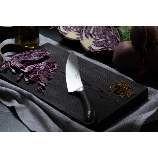 Signature kockkniv 20cm är en allroundkniv med ett krökt blad som möjliggör en gungande hackning och tärning. Tillverkad av tyskt rostfritt stål med ett ergonomiskt DuPont ™ handtag.