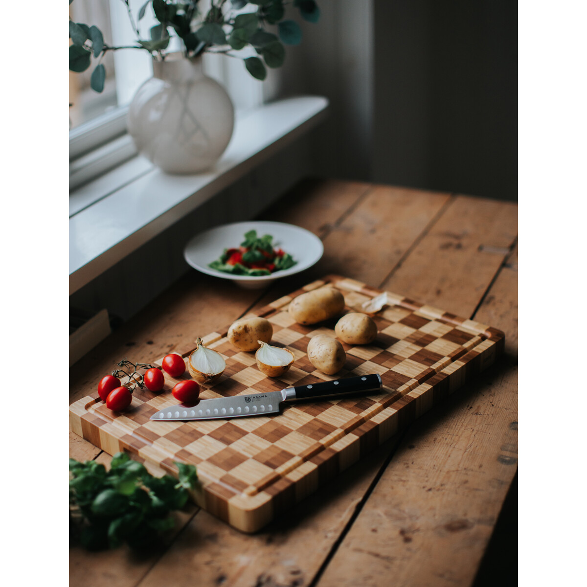 Kombo skärbräda i bambu erbjuder en stabil, hållbar arbetsyta som är skonsam mot knivar. Med de olika måtten är den lagom för vardagliga köksmoment. Den massiva konstruktionen ger trygghet vid skärning, samtidigt som bambuns naturliga struktur ger ett varmt uttryck.
