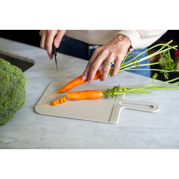 Praktisk, vikbar skärbräda som gör det möjligt att hacka grönsaker, frukt, kött och annat och sedan på ett smart sätt flytta dina råvaror från skärbrädan till en skål eller gryta. Den vikbara skärbrädan sparar även plats i ditt kök.