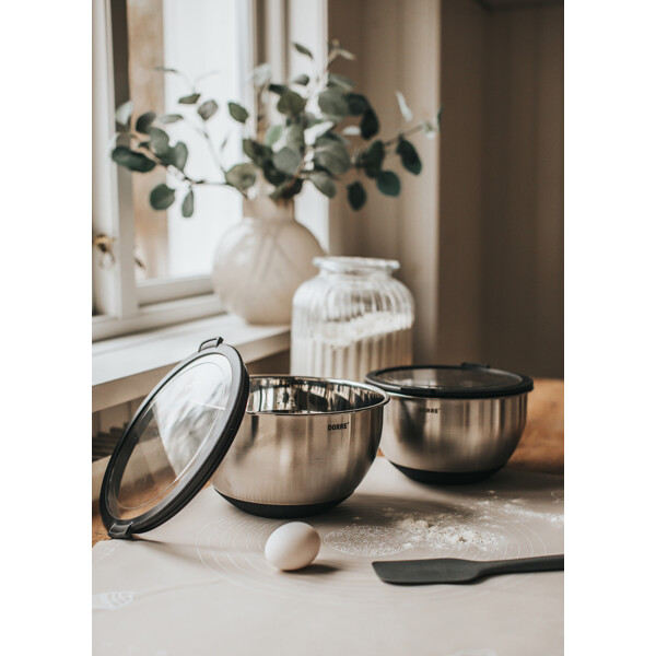 Belki bunke 2-pack i rostfritt stål erbjuder två rymliga volymer för bakning, matlagning och förberedelser. Med 2,5 och 3,5 liter får du flexibla skålar som tål vardaglig användning. Den lätta men stabila konstruktionen ger bra grepp och hållbarhet i kökets alla moment.