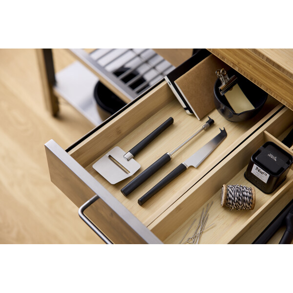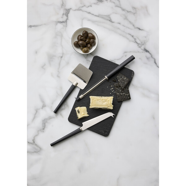 Den klassiska osthyveln är lämplig för fasta ostar och det breda bladet med vass egg hanterar enkelt ostskivan utan att använda fingrarna.