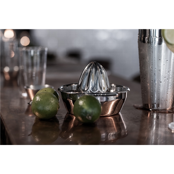 Citronpress från Exxent med uppsamlingsfat. Den praktiska citruspressen samlar upp citrusjuicen vilket reducerar spill och gör serveringen enklare.