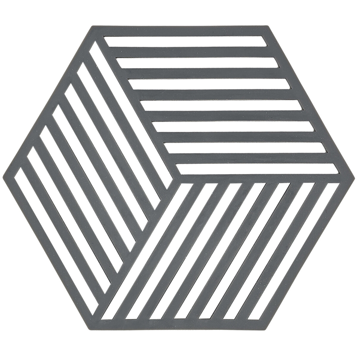 Hexagon grytunderläggen i silikon är så grafiskt dekorativa att de inbjuder att placera ut flera stycken längs med bordets hela längd utan att ställa något på dem. De är värmetåliga upp till 250 °C och kan diskas i diskmaskin. 16 x 14 x 0,9 cm.