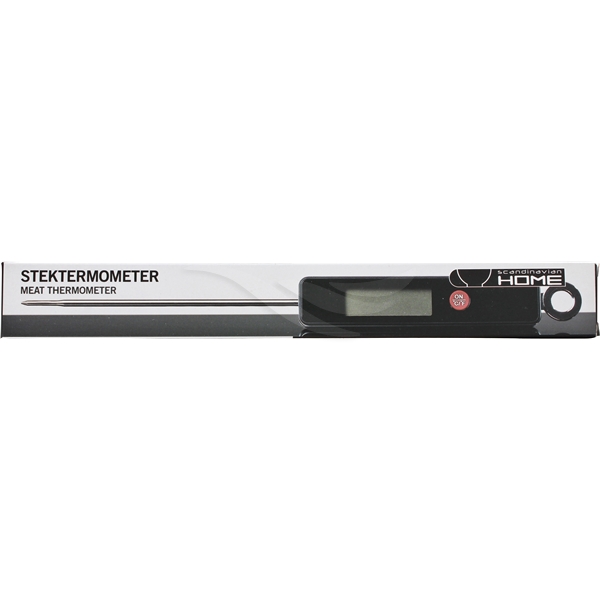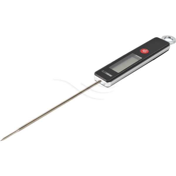 Batteridriven stektermometer. Termometern är lätthanterlig och pålitlig med en tydlig och stor display. Storlek: 26 x 2,5 x 1 cm. Färg: Svart & rostfritt. Batteri ingår (cr2032).