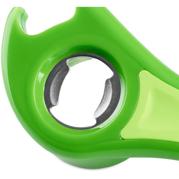 5 unika öppningsfunktioner i ett verktyg!Denna mångsidiga öppnare är det perfekta hjälpmedlet för att öppna locken på alla burkar och flaskor! ex konservburkar med hake, metallocket på glasburkar, kapsyler, pet flaskors skruvkorkar eller att få upp flärpen på en 33 cl läskburk.