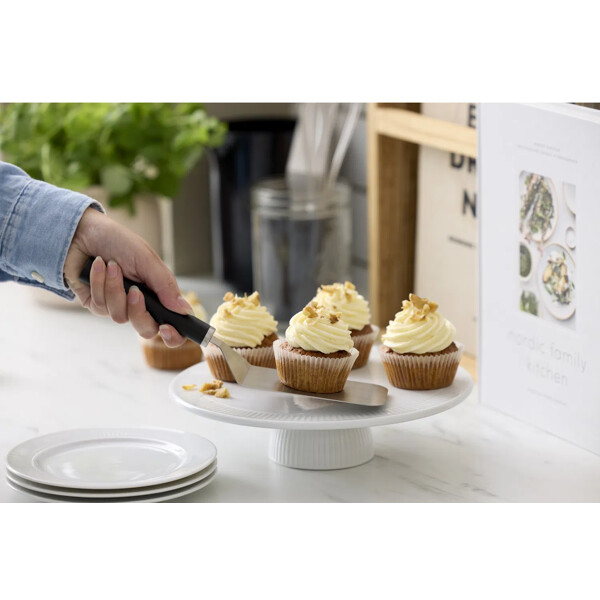 Den breda palettkniven är mångsidig och användarvänlig. Oavsett om du lyfter kakor från plåten eller vänder burgare i pannan glider det flexibla bladet lätt in under maten. Med sitt ergonomiska handtag passar palettkniven för många olika uppgifter vid matlagning och bakning – ett måste för varje matentusiast. Tål diskmaskin.