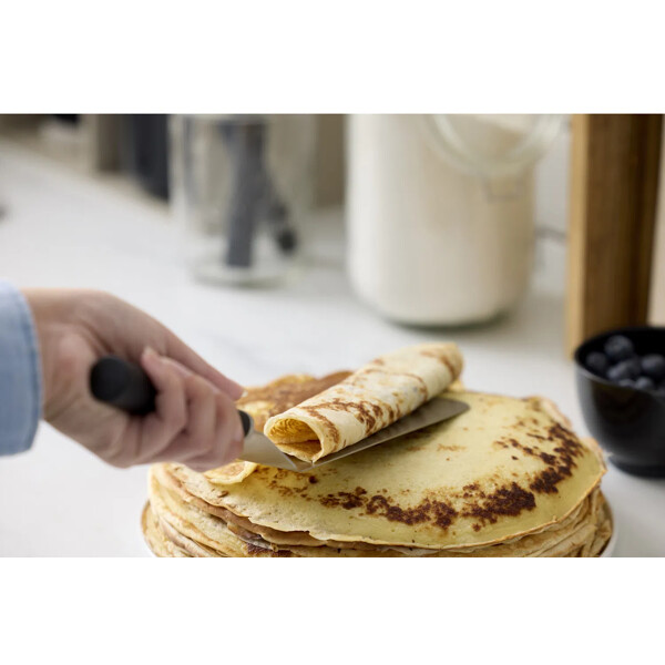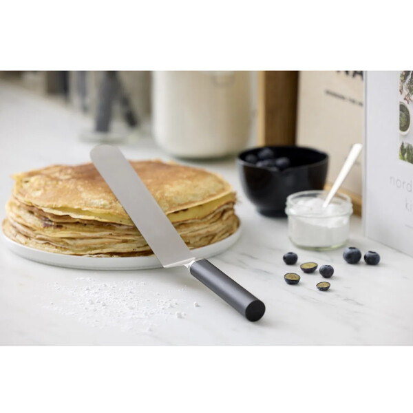 Emma palettkniv i stål har ett långt, smalt blad med böj, vilket gör den perfekt för att vända pannkakor, bre ut glasyr och mycket mer. Ett köksredskap du kommer att använda om och om igen – där stil möter funktion.