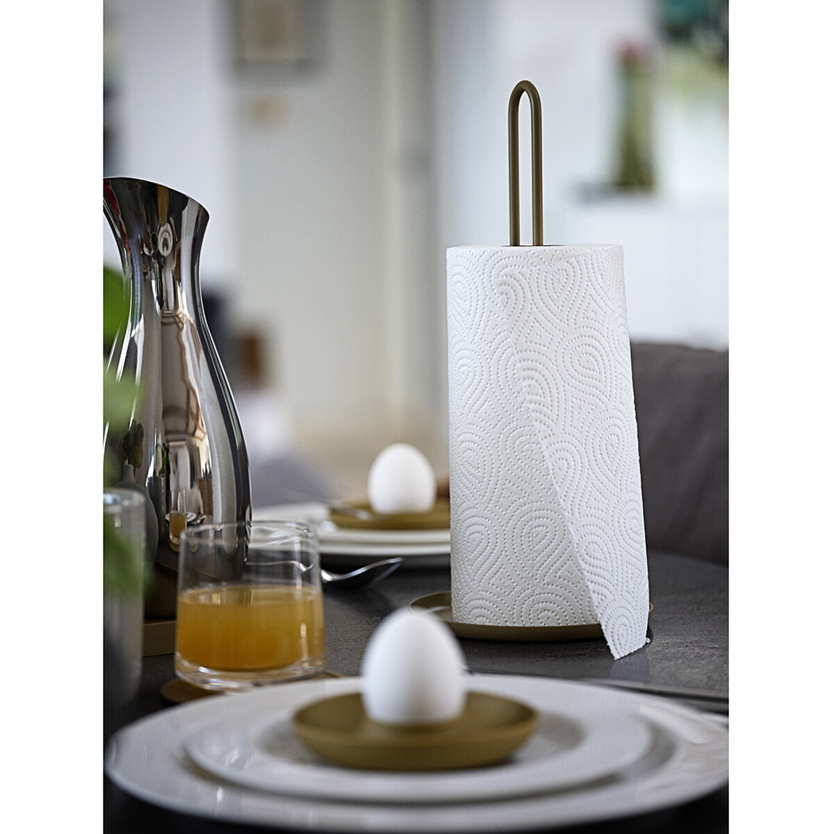Lika elegant och diskret som den mjukt rundade plåten är, lika funktionell och effektiv är den. Den hjälper till att hålla ordning på köksrullen – och gör att den står stadigt och bra på bordet.