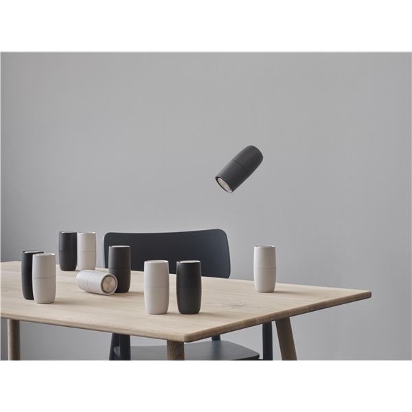 Saltkvarn från Steltons serie Norman Foster. Kollektionen är designad för det moderna hemmet och förenar enkla skulpturala former med mjuka linjer. Saltkvarnen har en matt ljusgrå ton som passar det moderna köket. Den slitstarka kvarnen kan ställas in på antingen fin eller grov malning efter behov. Den är dessutom designad så att salt eller peppar inte ska trilla ut på bordet efter användning. Malningsmekanismen är en keramisk Crush Grind® som garanterar att du kan ha din saltkvarn i många år. Alla material är återvinningsbara. Matcha tillsammans med pepparkvarnen från samma serie.