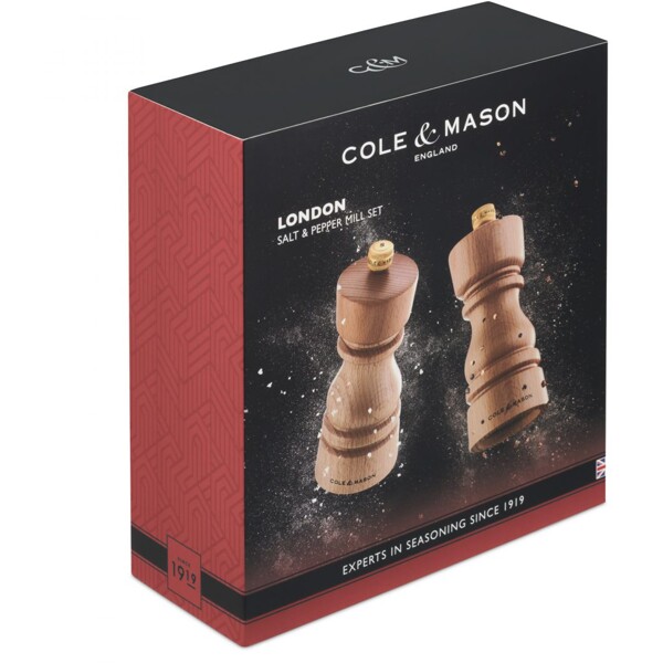 Den nya London-kvarnen har fått sitt namn från det historiska hjärtat av staden London, där varumärket Cole and Mason grundades redan 1919. Vi har skapat en kvarn som både hedrar vårt arv och blickar mot framtiden med en klassiker, men ändå modern estetik som kommer att visa sig vara ett elegant komplement till både traditionella och moderna kök. Formen på kvarnen har inspirerats av den vackra art déco- och brittiska industriarkitekturen som finns i hela staden. Knoppen som sitter på toppen av kvarnen ger en nick till den stolthet vi har över vårt engelska arv. Londonkvarnarna finns i fem storlekar över saltkvarnar, pepparkvarnar och presentset. Precisionsmekanism i kolstål. Saltkvarnarna är alla utrustade med vår rostskyddande keramiska mekanism av hög kvalitet.