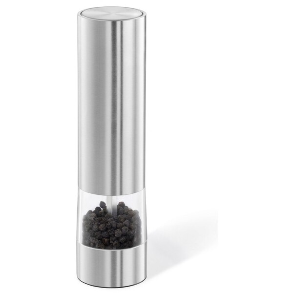 Kolstål kvarn endast för svarta pepparkorn. Enhandsknapp och malings grad justerbar från fint pulver till grovkornigt. Batteridriven (batterier 4xAAA, ingår ej)