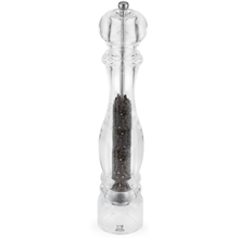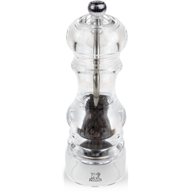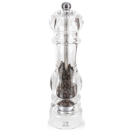 Design: Peugeot Klassisk med tidlösa linjer och helt i transparent Akryl. Det patenterade och antirost-behandlade malverket i pepparkvarnen och saltkvarnens malverk i rostfritt stål är precisionsverk i högsta kvalité, båda med livstidsgaranti. Alla kvarnar är designade för att passa lika bra hemma i köket eller på matbordet, som i köket och på restaurangborden hos de främsta köksmästarna världen runt. Med de manuella kvarnarna maler du traditionsenligt, medan du med kvarnarna utrustade med U-Select-systemet, har sex förinställda malningsgrader att välja mellan. Behöver du ha den en handen fri, finns elektriska kvarnar. Peugeot-fabriken, som ligger i Quingey i östra Frankrike, producerar mer än 3 miljoner kvarnar per år som levereras över hela världen. Peugeots filosofi kring malverk är att utveckla verk specifikt för varje krydda. Man är övertygade om att detta ger bästa resultat. Peppar, chili, linfrö, muskot och så vidare har alla unika verk för sin typ av krydda. Malverket för peppar är utformat för att först krossa/dela pepparkornen innan de mals. Detta gör att man behåller aromen bättre i kryddan när den är mald.