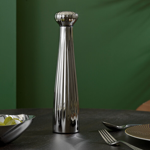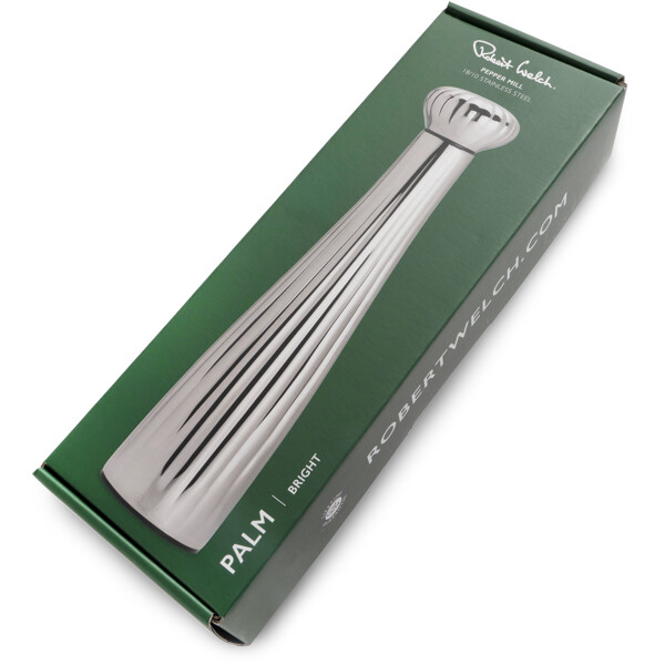 Ge ditt kök eller matbord en känsla av elegans med Palm Bright Large Pepparkvarn – en imponerande designikon som kombinerar skönhet och funktion. Med sin höga och graciösa, räfflade form och spegelpolerade finish är denna kvarn både en praktisk köksdetalj och ett stilrent komplement till Palm-seriens bestick.