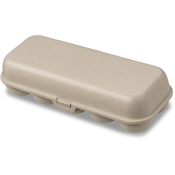 Äggkartong för 10 st ägg, tillverkad i 100% återvinningsbar miljövänlig biocirkulär termoplast och träfiber - perfekt för shopping på bondens marknad. Asken är säker och stabil och har ett lock med klicklås. Det chockresistenta materialet håller äggen garanterat hela. Stapelbar så du sparar plats i kylen.