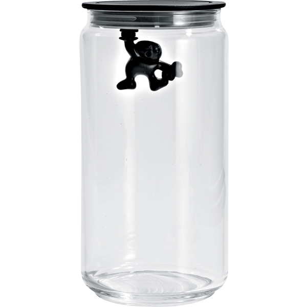 Den ultimata burken för smart och snygg förvaring. Burkarna finns i flera olika storlekar och färger. Glasburken har ett tättslutande lock av plast. Själva designen sitter på undersidan av locket i form av en charmig liten gubbe som försöker klamra sig fast. Det är upp till var och en att mixa och matcha mellan de olika storlekarna och färgerna. Burken finns i fyra olika storlekar som alla har samma diameter (10,5 cm) men som har olika höjd. Burken som har höjd 20,5 cm rymmer 500 g kaffe.