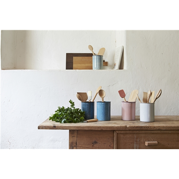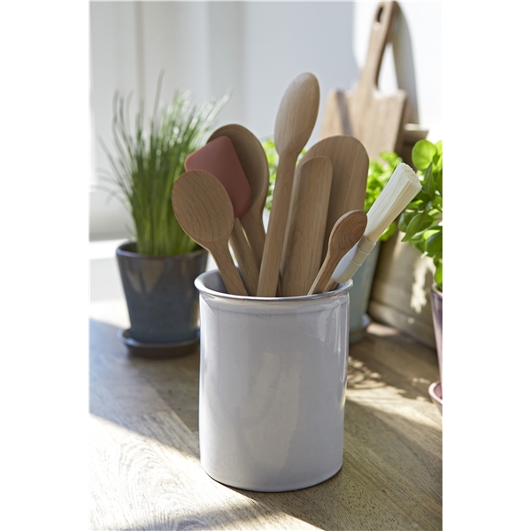 Redskapskruka från Knabstrup Keramik. Ett snyggt sätt att förvara dina köksredskap såsom skedar, degskrapor och köksutrustning i köket. Redskapsförvaringen är tillverkad i terrakotta som blivit kraftigt eldad med en reaktiv glasyr som gör varje produkt unik. Färg och mönster kan skilja sig från produkt till produkt. Redskapskrukan finns i flera färger.