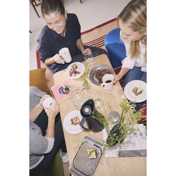 Material: Blankpolerat stål och glasinsats, övriga kannor är i plast med glasinsats