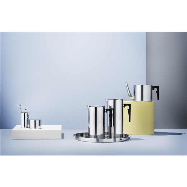 I Arne Jacobsens klassiska Cylinda-Line sortiment ingår även en 2-liters vatten kanna med isrist. Idag är vatten en fast del på bordet i de flesta hem, och nu är det dags att låta kannan komma fram som det otvivelaktiga designklassiker det är.
