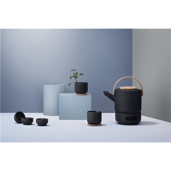 En kombination av skandinavisk design och japansk kultur. Ta dig tid med Theo. Tekannan är vacker i en rå, svartbrun färg och i klassiskt skandinaviskt stengods med gjutjärn. Lock och handtag är i bambuträd som ett trevligt inslag från asiatisk te kultur. Tekannan har ett enkelt och stilrent formspråk som ger frid för ögat. Tekannan går inte att använda på spisen.