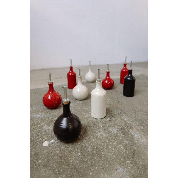 Våra originalfärger lyser upp den autentiska designen på denna flaska för olivolja och ger din bänkskiva eller bord en färgklick. Du kan hälla exakt den mängden olja du önskar, och droppskyddshällaren förblir ren. Flaskan av keramik bevarar all smak av de bästa olivoljorna genom att hålla dem borta från ljuset.