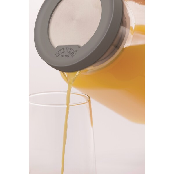 Vi presenterar Kilner 1,2 liters fyrkantig kylskåps kanna i glas, den perfekta kombinationen av praktiska egenskaper och elegans. Den här borosilikatkannan är designad med ett lock i rostfritt stål med silikonkant för ett säkert grepp och säkerställer enkel hällning. Det innovativa locket erbjuder ett dubbelt hällsystem – ett för maximalt flöde och ett annat med ett filter för infusing. Dessutom kan locket vridas till ett stängt läge för att förhindra spill och behålla fräschören, vilket gör det till ett mångsidigt och elegant tillskott till alla kök.