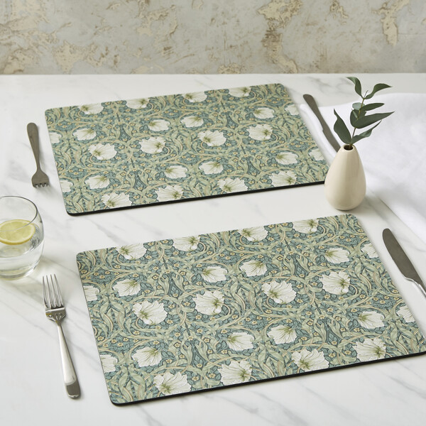William Morris & Co:s originalmönster lyfter bordets estetik och ger en konstnärlig touch till din dukning. Dessa underlägg är inte bara vackra, de är också praktiska och tåliga mot fläckar och höga temperaturer upp till 100°C. Rengör dem enkelt med en fuktig trasa. Perfekt för vardagsanvändning eller speciella tillfällen, dessa underlägg från Morris & Co är en sann fröjd för ögat och skyddar ditt bord med stil.Mått: 40,1 x 29,8 cm.