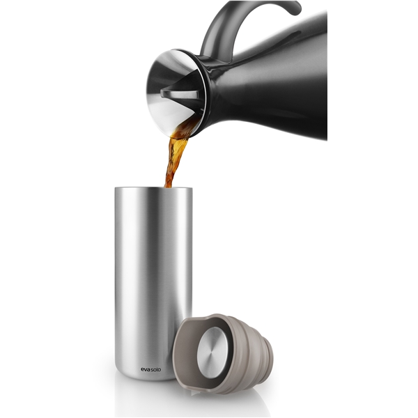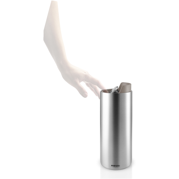 Urban To Go Cup från Eva Solo är en smidig kopp där locket är lätt att öppna och stänga i farten tack vare klickfunktionen som enkelt kan hanteras med en hand. Fyll Urban To Go Cup med kaffe eller andra drycker – den håller värmen eller kylan perfekt tack vare dubbla väggar och vakuumeffekt. Perfekt termosmugg när du är på språng.