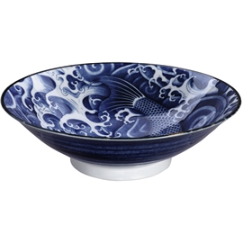 Vacker skål från Tokyo Design Studio med blått asiatiskt mönster av en karpfisk. Carp Menbachi Bowl passar perfekt för exempelvis ramen eller risrätter. Skålen kombineras med fördel tillsammans med de andra skålarna från samma serie eller någon av de andra serierna från Tokyo Design Studio. Skålen är handgjord i Japan.