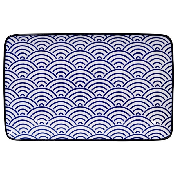 Nippon Blue serien från Tokyo Design Studio bjuder på vackert blåvitt porslin i japansk stil. Denna rektangulära tallrik passar bra för att servera sushi, tapas eller liknande. Fatet tål diskmaskin och mikrovågsugn.