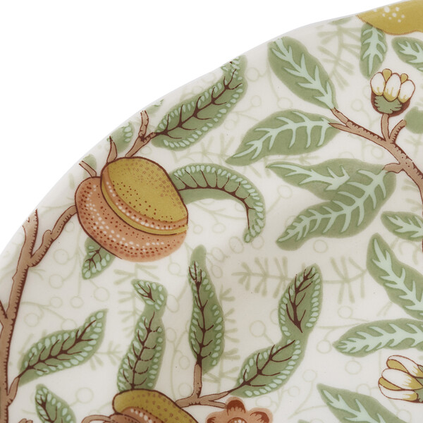 Tallriken är prydd med ett fint mönstret hämtat direkt från William Morris & Co.'s arkiv och presenterade i vackra nyanser. Den mjuka färgskalan och det genomgående mönstret erbjuder en fräsch maximalistisk stil för ditt bord.