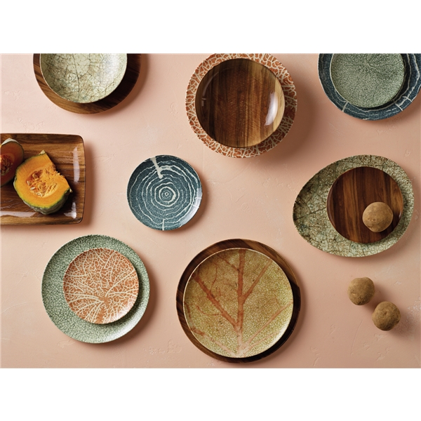 På Nature Essence Mattallrik 27,5 cm, förstärker och omformar reliefen de typiska växtränderna av löv. Mixa och matcha olika tallrikar och fat för en fantastisk naturlig dukning. Finns i olika naturliga mönster och färger.