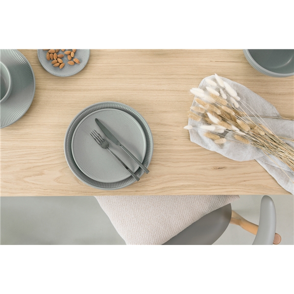 Thomas Clay Mattallrik 27 cm från Rosenthal är en tallrik i stengods med plisserat mönster som går från ovansidan till mitten av tallriken och finns i flera färger. Mattallriken passar både till fest och vardag. I serien finns olika delar som passar tillsammans eller i kombination med andra färger.