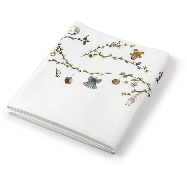Denna vackra duk från Kähler Hammershøi är dekorerad med nostalgiska julinslag som julhjärtan, pepparkaksgubbar, trumpeter, trummor och snögubbar. Hammershøi julduk sprider julens varma glädje över bordet och stödjer både den klassiska vita servisen samt julservisen Hammershøi. Duka upp till fest med denna undersköna serie från Hammershøi.