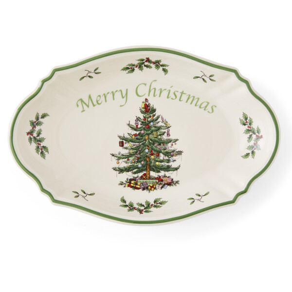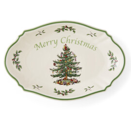 Christmas Tree Merry Christmas Bricka 28cm ingår i julserien av porslin från Spode. Christmas Tree kollektionen är en av världens populäraste julserviser. Christmas Tree är dekorerad med en underbar julscen. En riktig klassisk julservis som ger en äkta julkänsla. Christmas Tree porslinet är både mikrovågs- och diskmaskinsäkert.