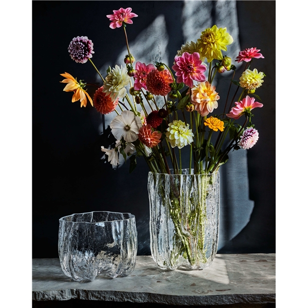 Crackle skål från Kosta Boda. Serien Crackle är designad av Åsa Jungnelius där en speciell teknik används för att glaset ska krackeleras. Det varma glaset sänks ner i kallt vatten och krackelerar i mötet mellan varmt och kallt - därav det vackra mönstret i glaset. En vacker skål som med fördel kombineras tillsammans med de andra delarna från samma serie.