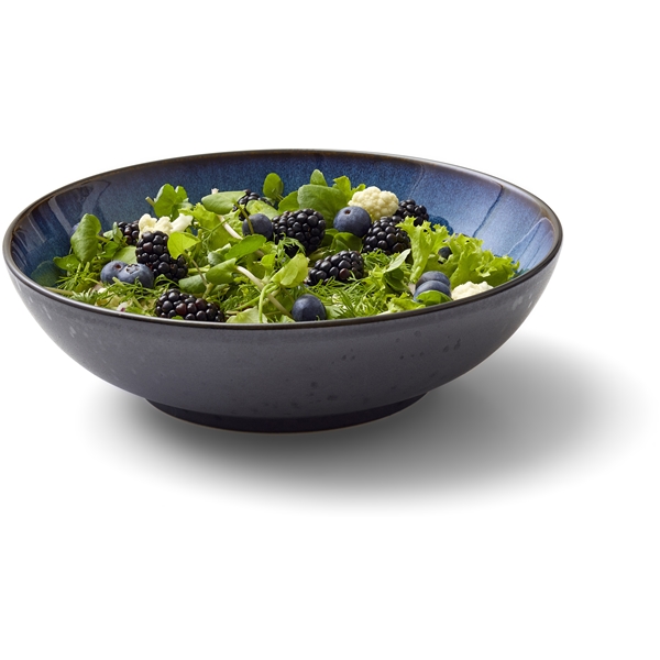 BITZ Gastro salladsskål i svart stengods med blank, glasyr på insidan kombinerat med matt reaktiv glasyr på utsidan. Skålen är perfekt för stora sallader och anrättningar. Lämplig för diskmaskin, mikrovågsugn och ugn upp till 220 grader. Diam. 24 cm, höjd 6,5 cm. På grund av tillverkningsprocessen förekommer både färgskillnader och variationer i glasyren, vilket ger varje exemplar ett helt unikt utseende.