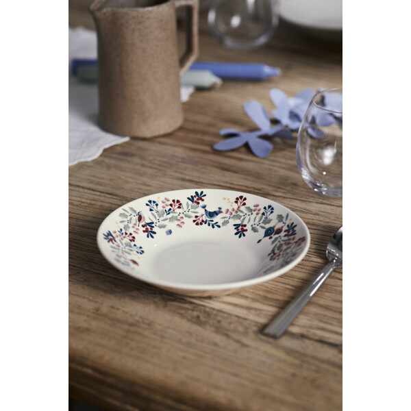 Modern nostalgi och värme för alla de kalla månadernas mysiga stunder. Den ikoniska vita Grand Cru-servisen, som är en minimalistisk Rosendahl-klassiker, har klätts upp för höstmys och julstämning med norska Fam Irvolls maximalistiska illustrationer. På ett kreativt och lekfullt sätt hämtar hon inspiration från det förflutna och skapar med Grand Cru Cottage-serien ett modernt och stämningsfullt uttryck. På seriens tallrikar, skålar, muggar och förvaringsburkar möts den nordiska naturen med klassiska julmotiv och vintagepynt i ett härligt samspel. Grand Cru Cottage-skålen mäter 19 cm i diameter och är dekorerad med en vacker ranka som elegant omfamnar hela kanten. Den kan självklart användas till servering av nötter, småkakor och annat gott, men även till frukost, risgrynsgröt eller ris à la malta på julafton, då skålen sätter pricken över i på julbordet och fulländar julmyset. Grundelementen i Grand Cru Cottage är blad och grenar, bär, havtorn, fåglar, honungshjärtan, glasdekorationer och ekollon som är sammansatta i en unik komposition på varje del av servisen. Grand Cru Cottage är som en familj där alla familjemedlemmar innehåller grafiska element inom samma färgpalett, så att var och en är unik men ändå harmonisk. Gemensamt för alla seriens motiv är att det ljuva och nostalgiska uttrycket skapar en extra mysig stämning som gör servisen till din nya favorit under hösten och julmånaden – både i vardagen och när gäster kommer på besök.
