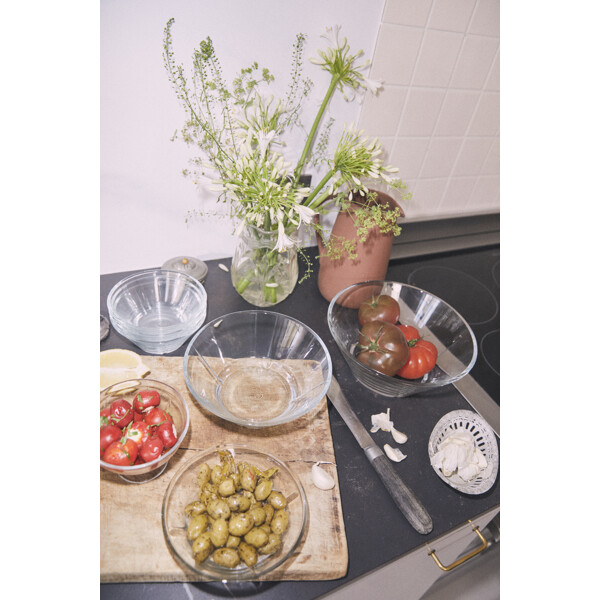 Lyft serveringen en nivå med den nya skålen på fot från Grand Cru Soft. Det är ingen överdrift att kalla den nya serveringsskålen från Grand Cru Soft multifunktionell. Den ”upphöjda” skålen ger din dukning ett lätt utseende och en ny dimension till allt från frukostyoghurt med färska bär eller fruktsallad, till färska räkor och andra förrätter eller oliver och snacks till välkomstdrinken. Liksom de övriga skålarna i Soft-serien går den bra att stapla för att spara utrymme i skåpet. Skålen på fot ligger i en presentförpackning med fyra st. till ett förmånligt pris.Design: Rosendahl Storlek: Diameter: 11,8 cm. Höjd: 8,2 cm. Material: Blyfritt glas. Färg: Klar. Tål maskindisk i max. 50-55° C.