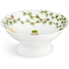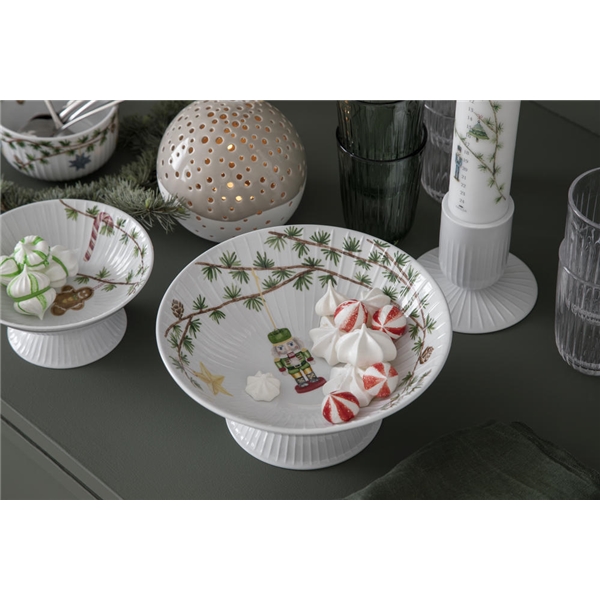 Julskål på fot från Kählers klassiska och eleganta julserie Hammershøi. Med sina vita ytor och vackra juldekor är skålens design extremt användbar i många situationer och passar utmärkt på julbordet. Du kan kombinera och använda julskålen tillsammans med andra juldelar och serviser från Hammershøi. Det fina porslinet bör tvättas för hand om du vill att det behåller sitt fulla motiv och står vackert under många år framöver.