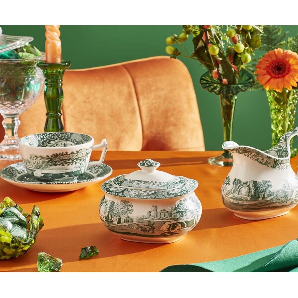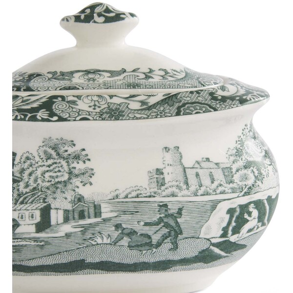 Heritage Green Italian Sockerskål med lock 0,25 L är ett charmigt tillskott till te- eller kaffestunden. Med samma ikoniska motiv som Spodes klassiska Blue Italian – här i en elegant grön nyans – förenar den tradition med uppdaterad färgsättning och tidlös skönhet.Motivet är inspirerat av den pittoreska italienska landsbygden och ramas in av det karaktäristiska 1700-tals Imari Oriental-mönstret som löper runt skålens kant. Den praktiska locket bevarar innehållet fräscht, och skålens balanserade form gör den både vacker och funktionell på bordet.Tillverkad i Stoke-on-Trent, England – där brittisk porslinskonst förfinats i generationer.