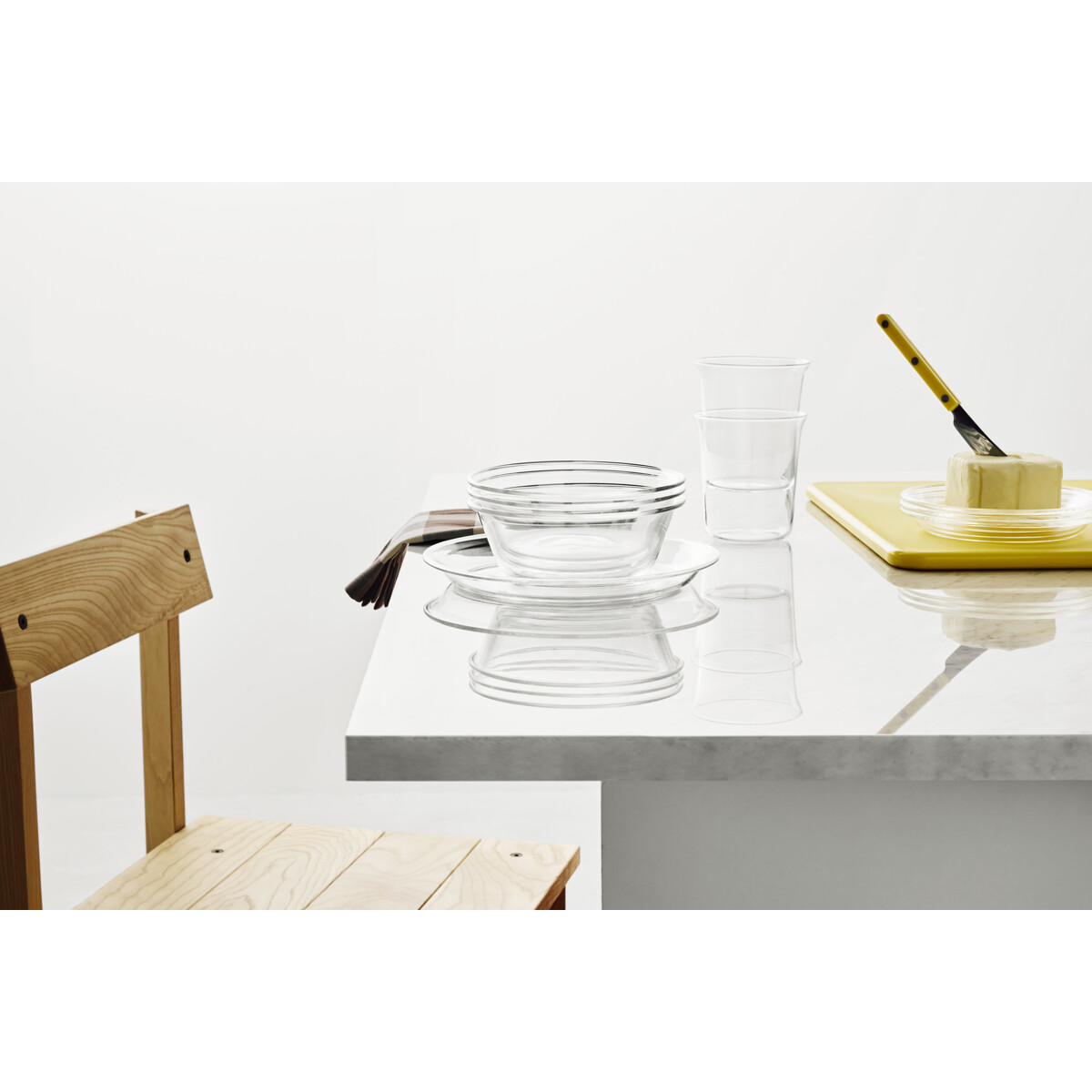 Innocent från Kosta Boda är en serie stapelbara koppar, glas, skålar och tallrikar tillverkade av värmebeständigt borosilikatglas. Delarna är designade med vardaglig mångsidighet och sociala stunder i åtanke, minimalistiska i form och multifunktionella i användning – tallrikar kan till och med användas som lock till skålarna. En modern tolkning av funktionell design, perfekt för servering, förvaring eller helt enkelt njutning.