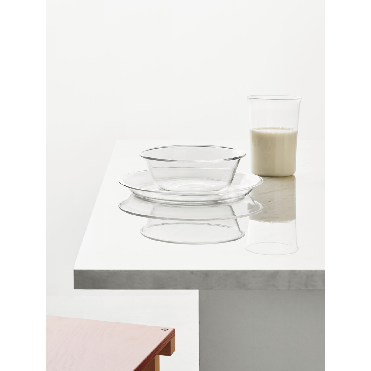 Innocent från Kosta Boda är en serie stapelbara koppar, glas, skålar och tallrikar tillverkade av värmebeständigt borosilikatglas. Delarna är designade med vardaglig mångsidighet och sociala stunder i åtanke, minimalistiska i form och multifunktionella i användning – tallrikar kan till och med användas som lock till skålarna. En modern tolkning av funktionell design, perfekt för servering, förvaring eller helt enkelt njutning.
