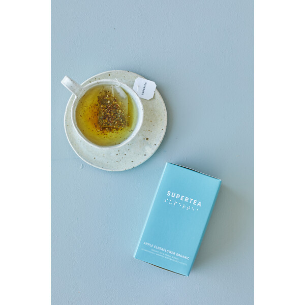 Apple elderflower är uppfriskande och gjord med ekologiskt grönt te kombinerat med läckra citrongräs och lakritsextrakt. Naturlig fläderblomma kompletterar blandningen och ger en unik smak.