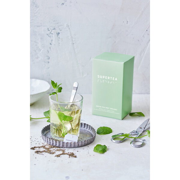 Green Tea Mint är en organisk teblandning som består av grönt te av högsta kvalitet och färsk mynta.